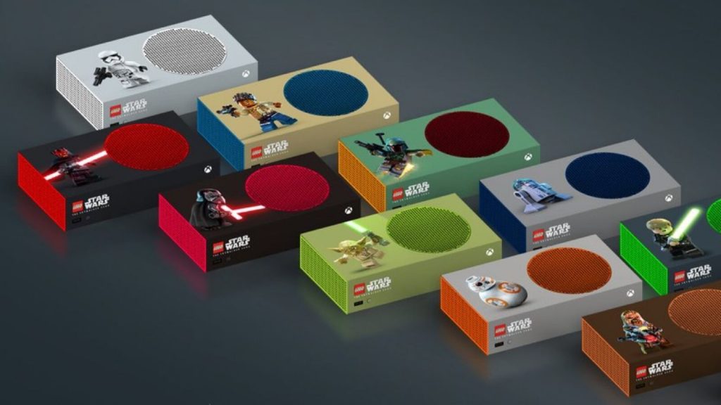 Chacune des 12 consoles personnalisées est dotée d’une couleur et d’un design uniques inspirés par un personnage Lego de Star Wars issu des neuf films de la saga Skywalker. BB-8 est représenté par une Xbox Série S orange et grise, par exemple, tandis que Boba Fett opte pour l’orange et le vert, et que Dark Vadar fait le plein de noir&13